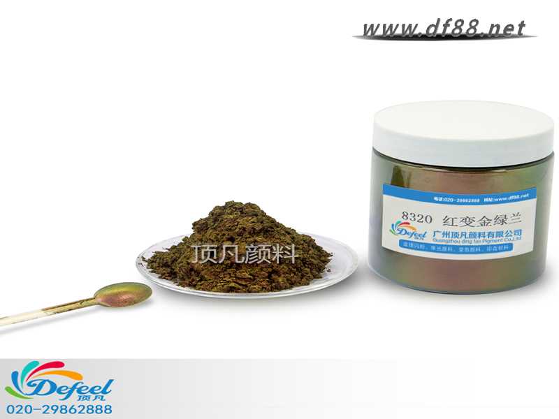 8320 紅變金綠藍變色龍粉可應用于涂料、油墨、塑料各產業,產品之設計大多以室內(無紫外光之環境)與室外(有紫外光之環境)有顏色變化為訴求。