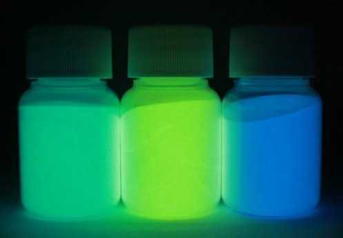 夜光粉先吸收各種光和熱,轉換成光能儲存,然后在黑暗中自動發光,并可無限次數循環使用,對陽光及紫外光有較快的吸收效果。是一種添加顏料,用于各種透明或半透明介質中,如塑料涂料釉料油墨玻璃化學纖維樹脂,制備發光制品